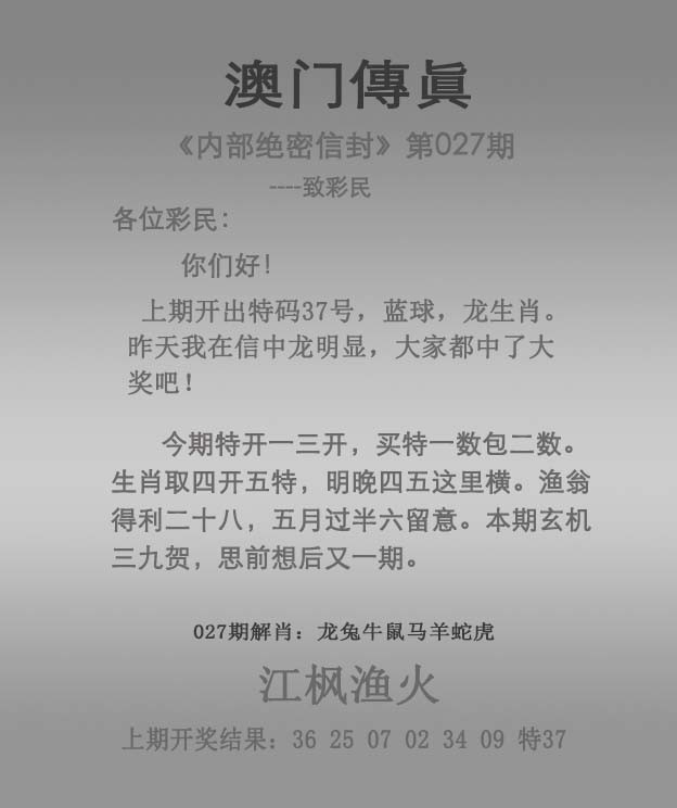 027期:澳门传真四字解开0000 【牛气冲天】 解:牛气冲天,解肖:鼠猴马龙牛鸡 ============================ 024期:澳门传真四字解开虎28 【垂帘听政】 解:垂帘听政,解肖:龙牛鸡虎猴马 ============================ 023期:澳门传真四字解开羊47 【变化多端】 解:变化多端,解肖:虎羊马龙牛鸡 ============================ 021期:澳门传真四字解开鼠42 【大起大落】 解:大起大落,解肖:龙牛鸡虎羊鼠 ============================ 020期:澳门传真四字解开马12 【半斤八两】 解:半斤八两,解肖:虎羊马龙牛鸡 ============================ 018期:澳门传真四字解开兔39 【北门南牙】 解:北门南牙,解肖:龙牛鸡兔羊马 ============================ 017期:澳门传真四字解开狗32 【亡国之器】 解:亡国之器,解肖:兔羊马狗牛鸡 ============================ 016期:澳门传真四字解开鼠06 【一厢情愿】 解:一厢情愿,解肖:狗牛鸡兔鼠马 ============================ 014期:澳门传真四字解开龙26 【艺高胆大】 解:艺高胆大,解肖:龙鼠马狗牛鸡 ============================ 011期:澳门传真四字解开羊11 【仗势欺人】 解:仗势欺人,解肖:狗羊鸡龙鼠马 ============================ 009期:澳门传真四字解开虎28 【忧心忡忡】 解:忧心忡忡,解肖:兔牛虎鼠猴蛇 ============================ 008期:澳门传真四字解开鸡21 【阳春白雪】 解:阳春白雪,解肖:牛虎兔羊猴鸡 ============================ 007期:澳门传真四字解开牛41 【迎刃而解】 解:迎刃而解,解肖:狗牛虎龙鼠马 ============================ |